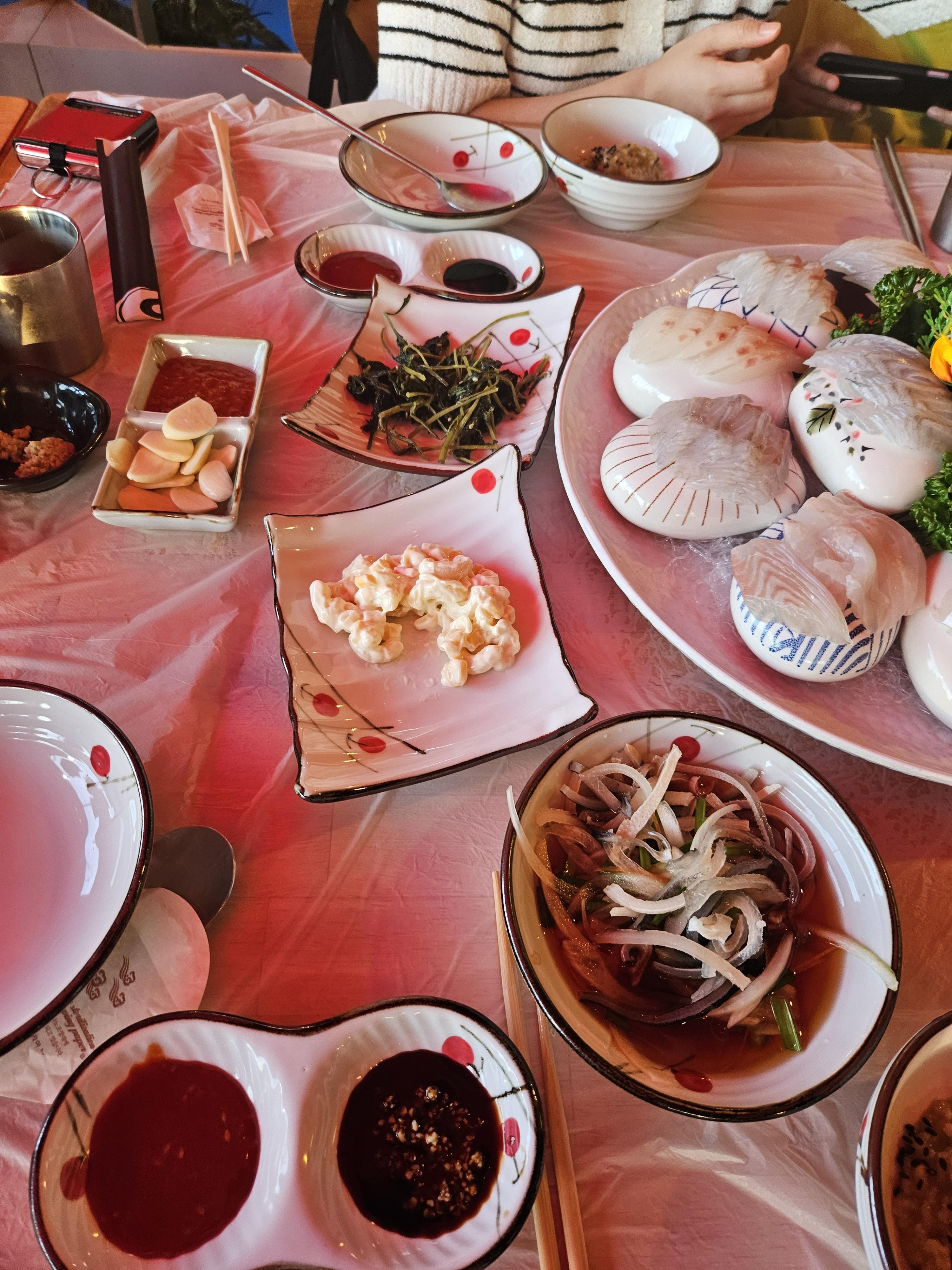 사장님께서는 횟집뿐 아니라 다른 사업도 크게 하고 계셔서 인심이 좋으셨습니다. 제 지인이 자주 가는 곳이라 그런지 랍스터도 서비스로 주셨습니다. 서빙해 주시는 이모님들도 친절하고 음식이 나오면 손질도 해주시고 설명도 잘해주셔서 재미있고 맛있게 먹을 수 있는 그런 횟집입니다.