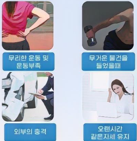 급성 요추염좌의 발생에는 다양한 원인이 있습니다.