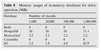 2016년 연구 논문에 나타난 몇 가지 비교를 살펴보겠습니다. 이 논문에서 저자들은 널리 사용되는 인메모리 데이터베이스를 실험하여 다음과 같은 측면에서 성능을 측정하였습니다.
